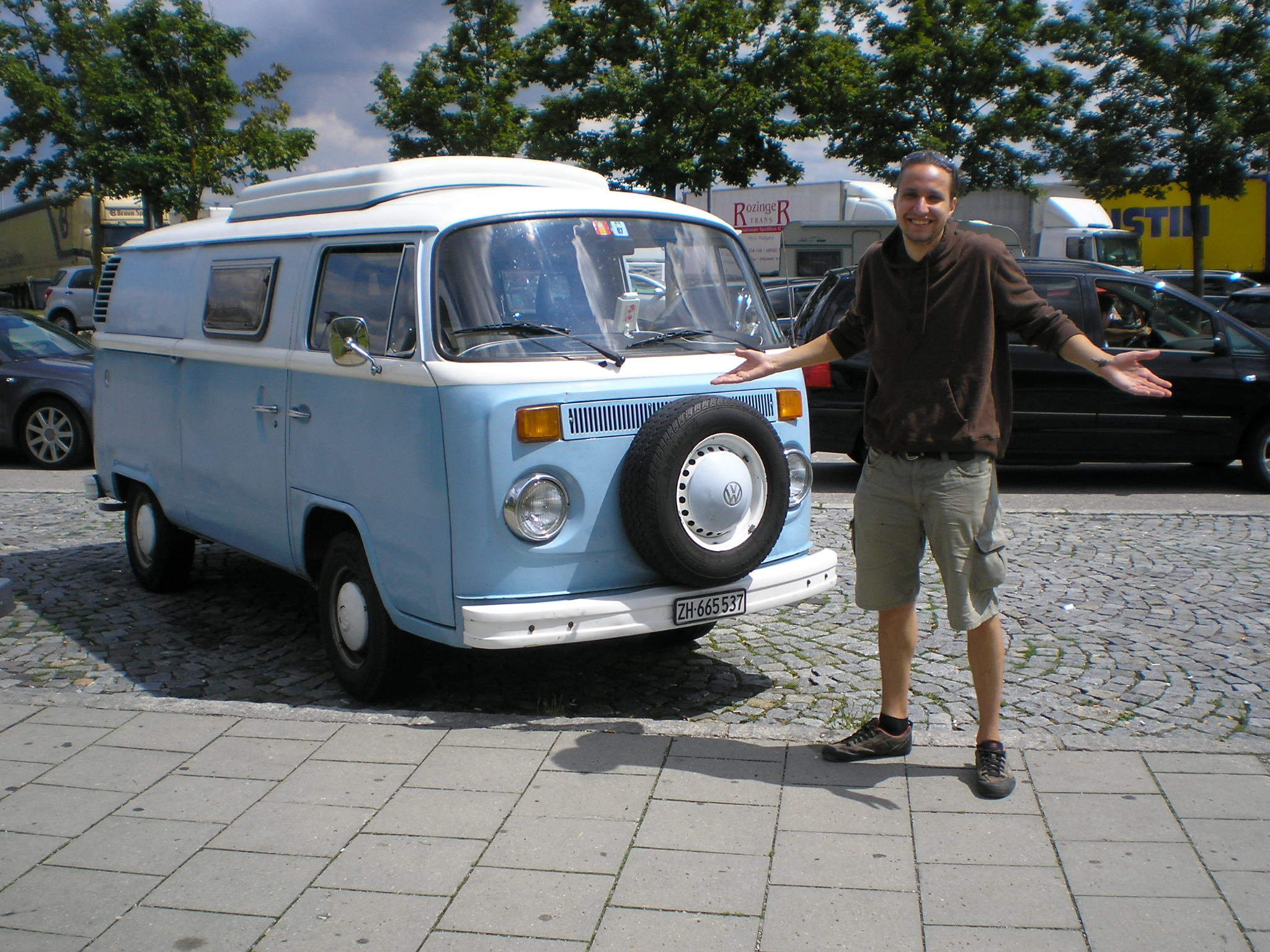 Poénból már teszteljük az "odamegyünk megkérdezzük technikát" még nagyon nem hiszünk benne, aztán elővesszük a fényképezőinket és elkezdünk kattogtatni, amikor bezakatol egy SURFös volkswagen old skul kis busz, amiről már tudtam, hogy az a mienk, mi velük fogunk menni, kb 5 perc telt el. És igen felvettek, mennek Zürichbe velük együtt mi is.