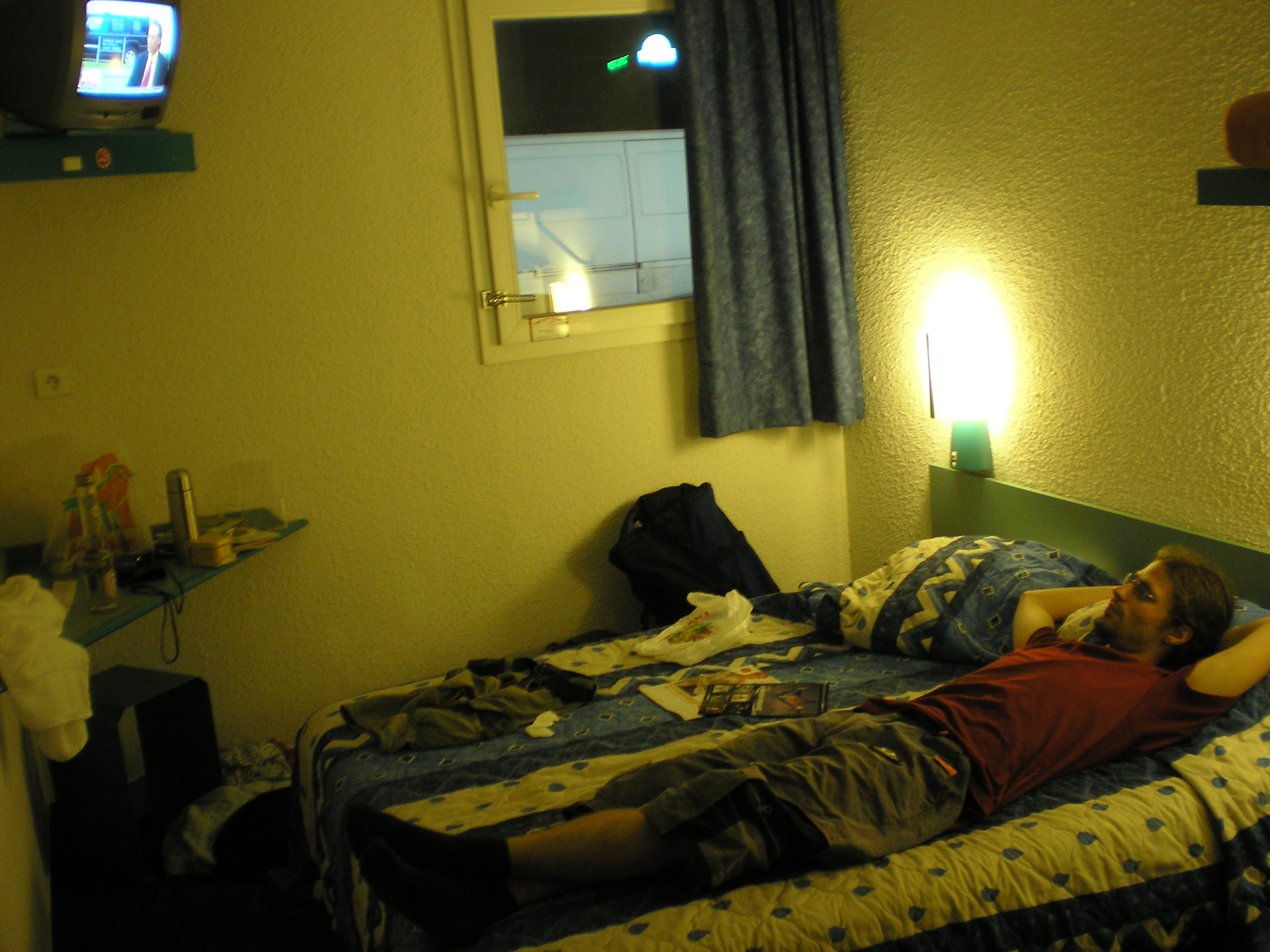 Mint látható, egy pillanat alatt belaktuk a szobánkat. :) Kajáltunk egy jót (bár a szalonna mintha zöldesebb lett volna már az átlagnál), majd zuhi, a már szokásos nagyon gagyi francia vetélkedő-nézés, majd aludtunk egy jót.