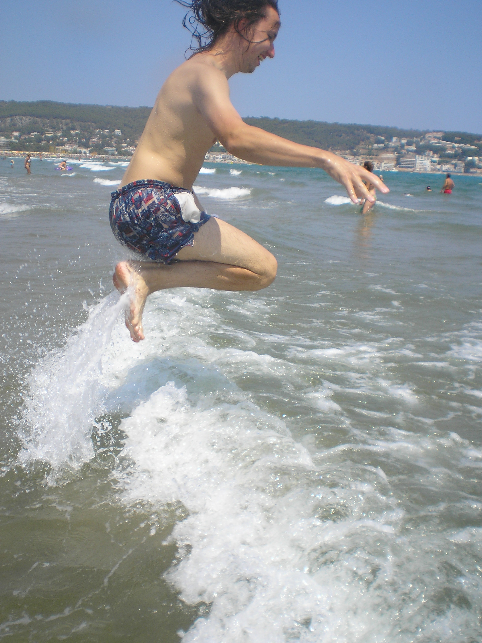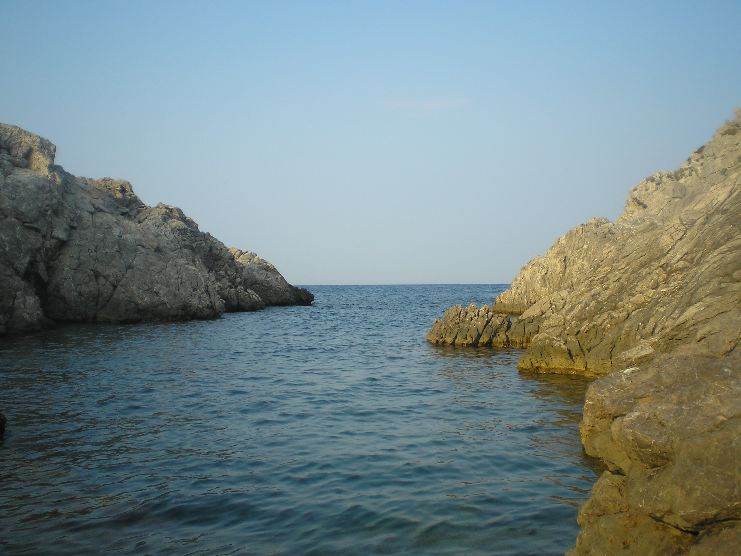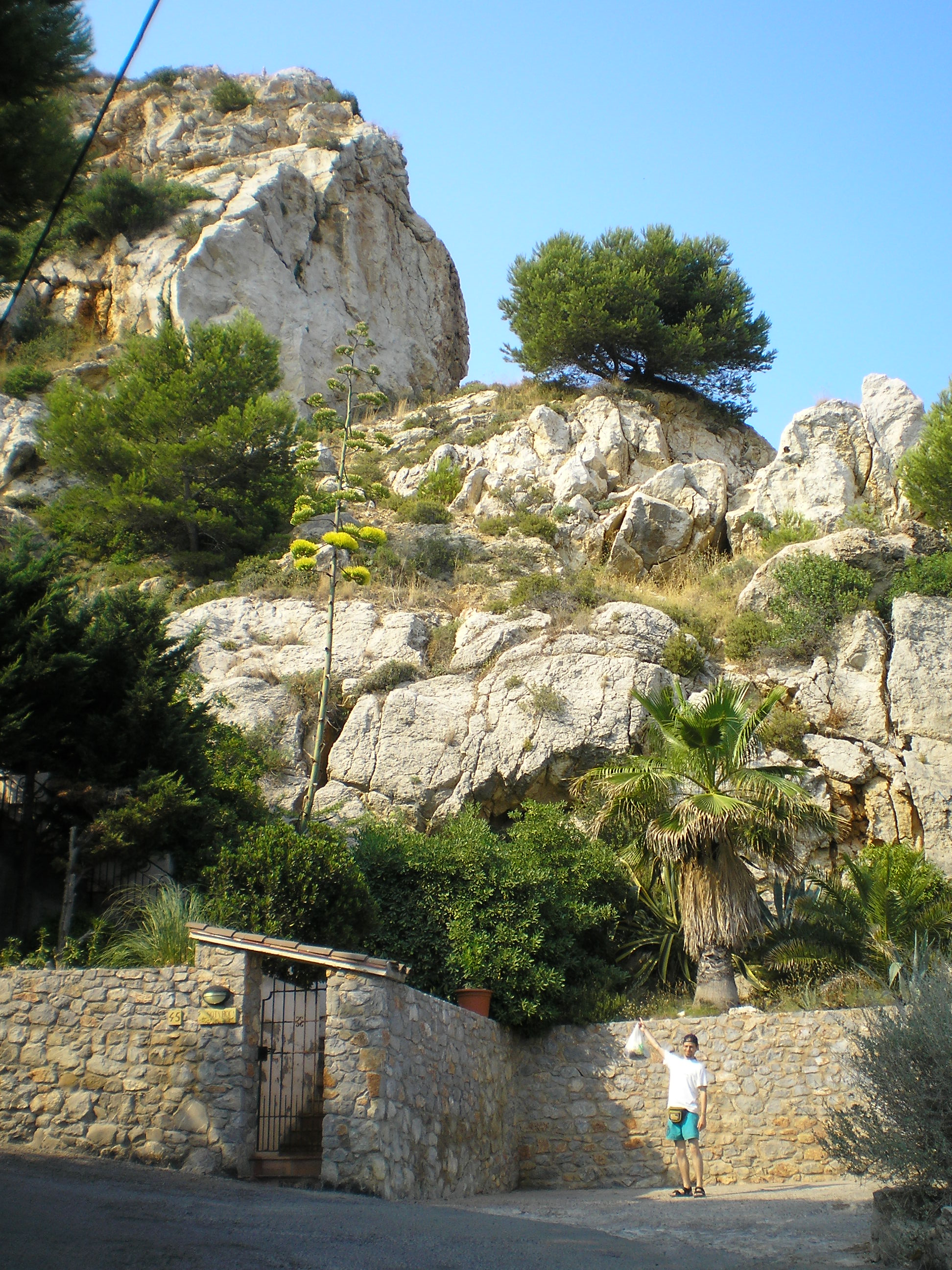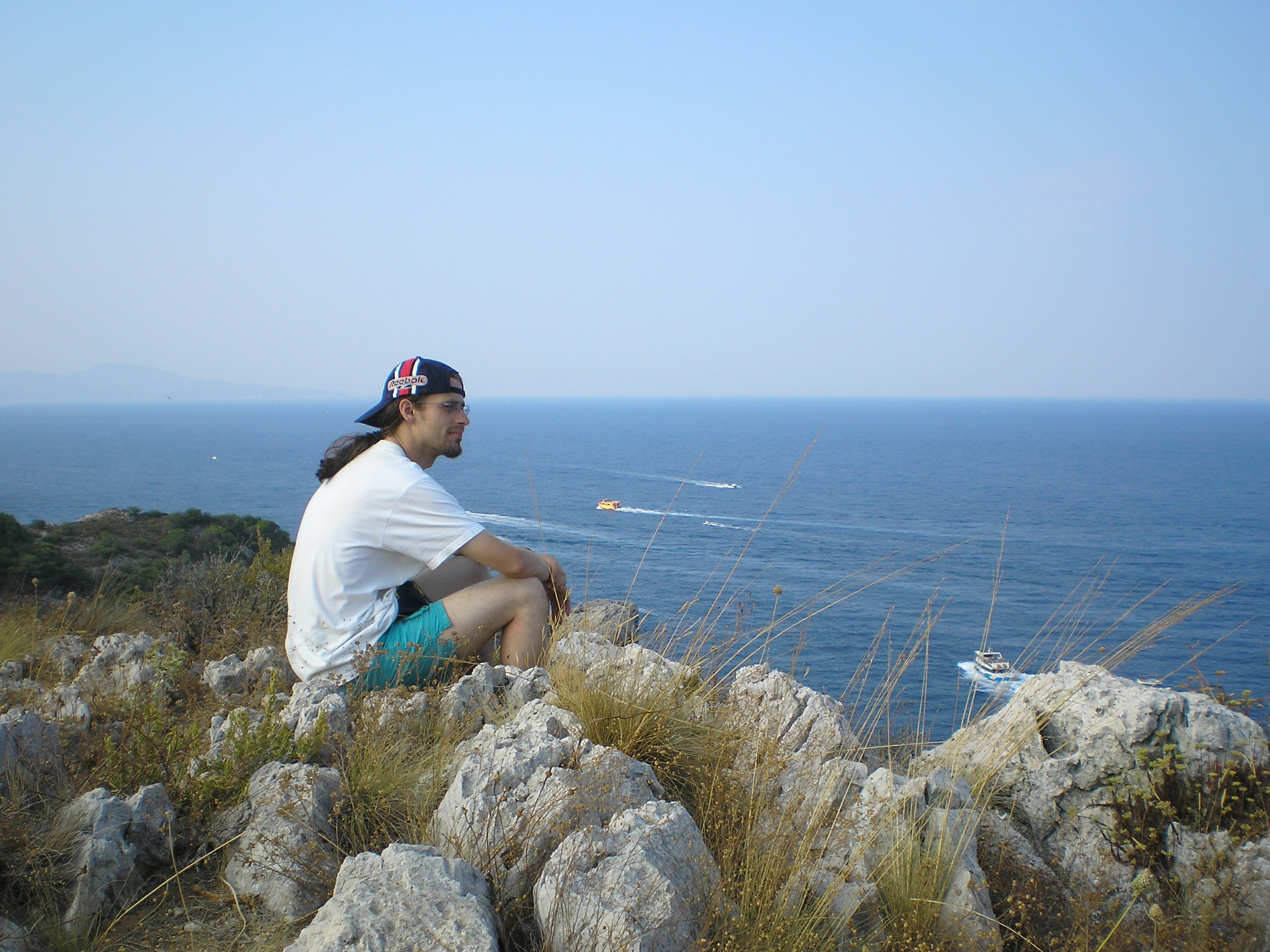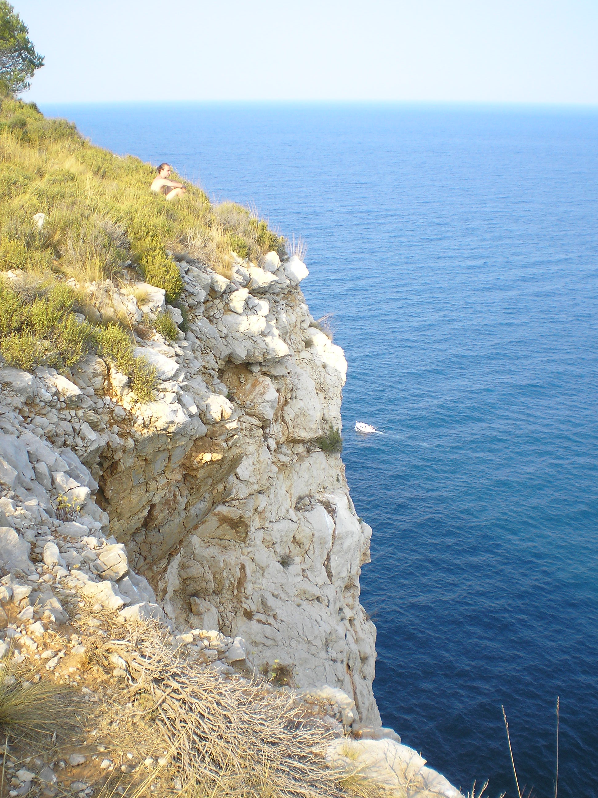 egy ideje hülyültünk ott, amikor jött egy spanyol család. Úgy láttam, ők nem akarnak a sziklákon bemászva szenvedni. Megkérdezték tőlünk (angolul), hogy hogyan a legegyszerűbb bejutni a vízbe? én meg mondtam félig viccesen, hogy hát be kell ugrani a szikláról... az apuka rákérdezett, hogy innen jó? És oda állt, ahonnan úgy véltük be lehet ugrani, csak ki tudja meddig megy le az ember a vízben, és azért jobb nem ráugrani egy tengeri sünre... mondtam, hogy "talán". Erre egymás után beugráltak. Nem szívbajosak ezek a spanyolok! Vagy csak tapsztaltak. Gyanítom nem most ugráltak be először tengerbe szikláról...