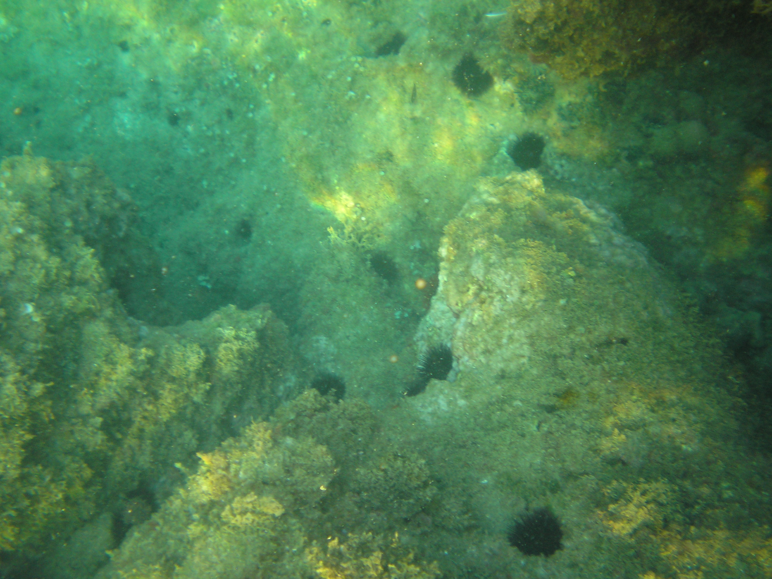 a parton a sziklák simák voltak, de beljebb érdesek és tele voltak tengeri sünnel