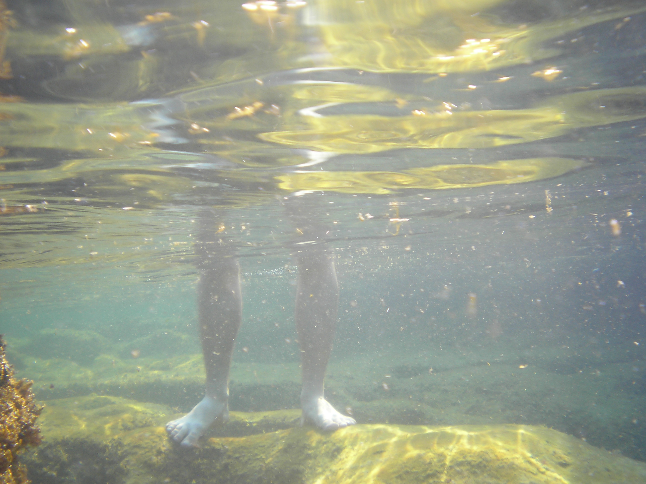 kis hezitálás után (a biztosításunk nem volt érvényes nem kiépített strandra, hehe), végül fogtuk magunkat és beúsztunk... elég nehéz volt felmérni lefelé a sziklák távolságát, mert néha lábnyújtásnyira éreztem őket, a sok kis tengeri sünbe meg ha nem muszáj nem akartam belerúgni. Így lebegtünk a tetején egy darabig, és vizsgálgattuk a laguna sötét titkait:)